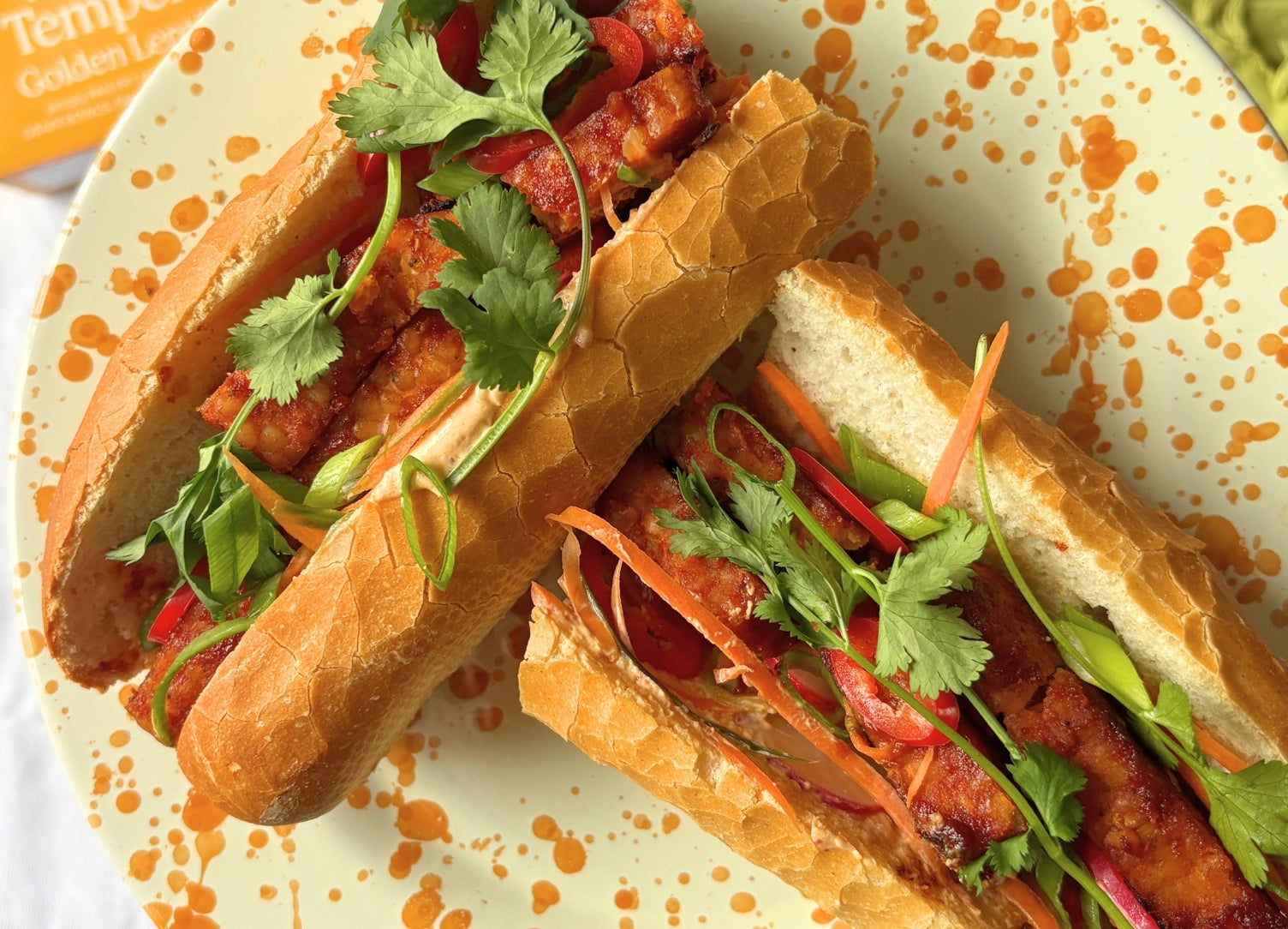 Our Golden Lentil Veggie Tempeh is naturally packed with protein and so quick and easy to prepare. Tossed in a sesame, soy sauce and gochujang glaze and pan-fried until golden, it makes a seriously good sandwich filling, especially with this chilli-oil whipped tofu spread.